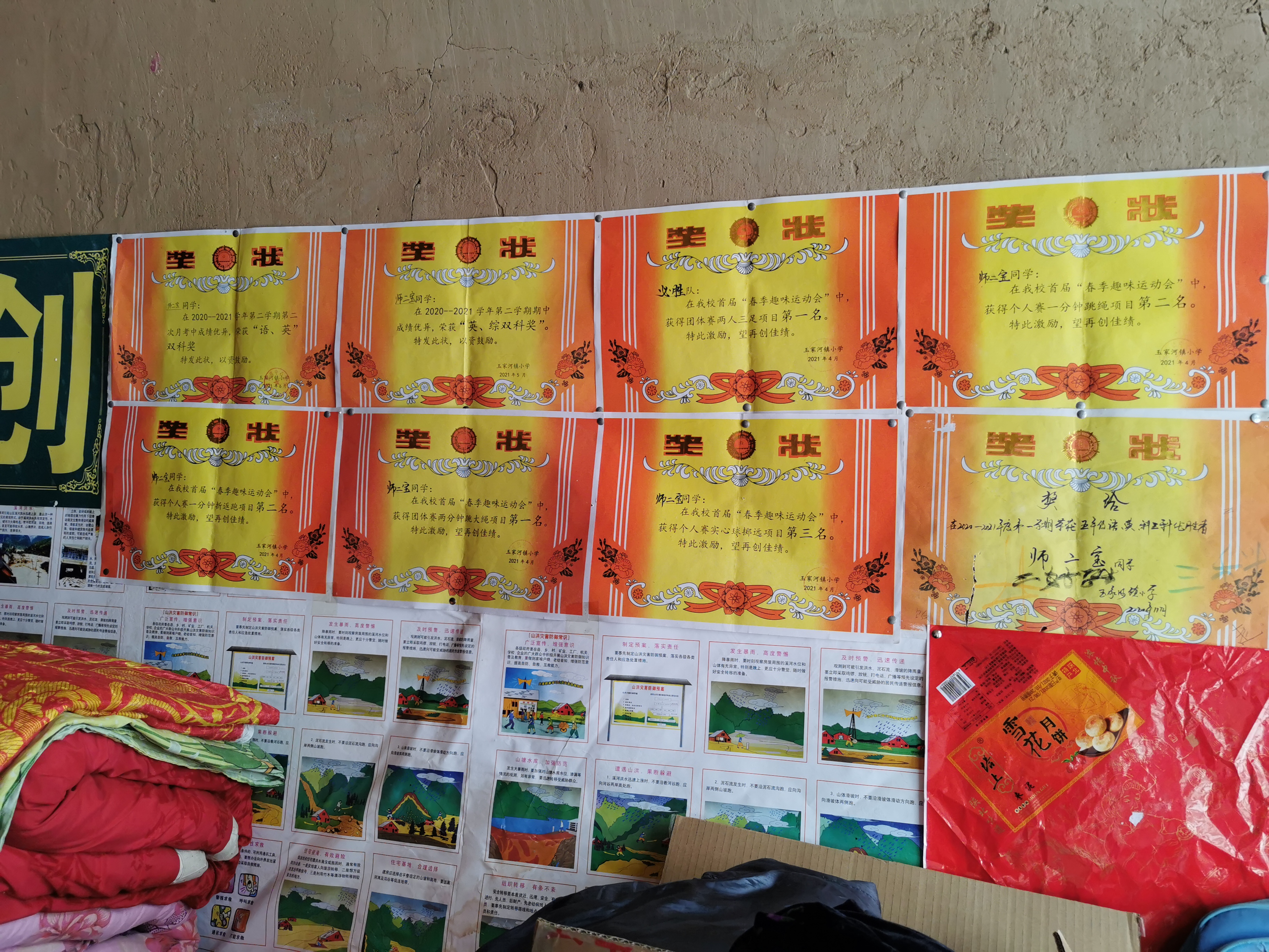 生活的輾轉(zhuǎn)和艱辛養(yǎng)成了兄妹倆沉靜的性格,而優(yōu)異的成績(jī)記錄著兄妹倆的努力。窯洞裸露的土墻上貼滿了兄妹倆獲得的獎(jiǎng)狀,干凈整齊的書(shū)桌與落塵的灶臺(tái)形成鮮明對(duì)比。窯洞外,一棵棗樹(shù)安靜地生長(zhǎng)著,如同少言而堅(jiān)韌的兄妹倆,即使扎根貧瘠,也依然迎著風(fēng)沙奮力向上。